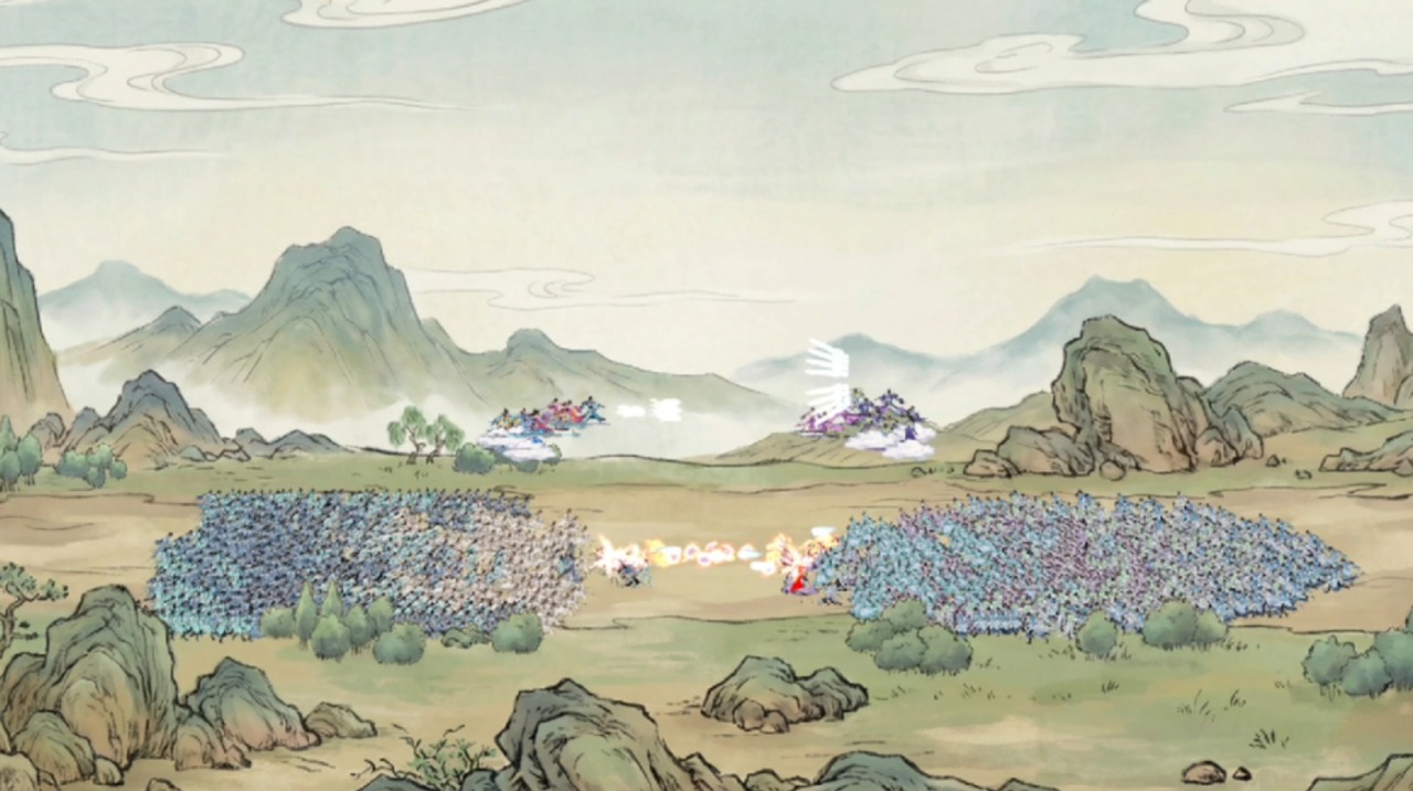 在此先為各位展示凡間戰鬥畫面。對抗魔族、玩家主動干預戰局等相關內容,仍在持續調試優化中。