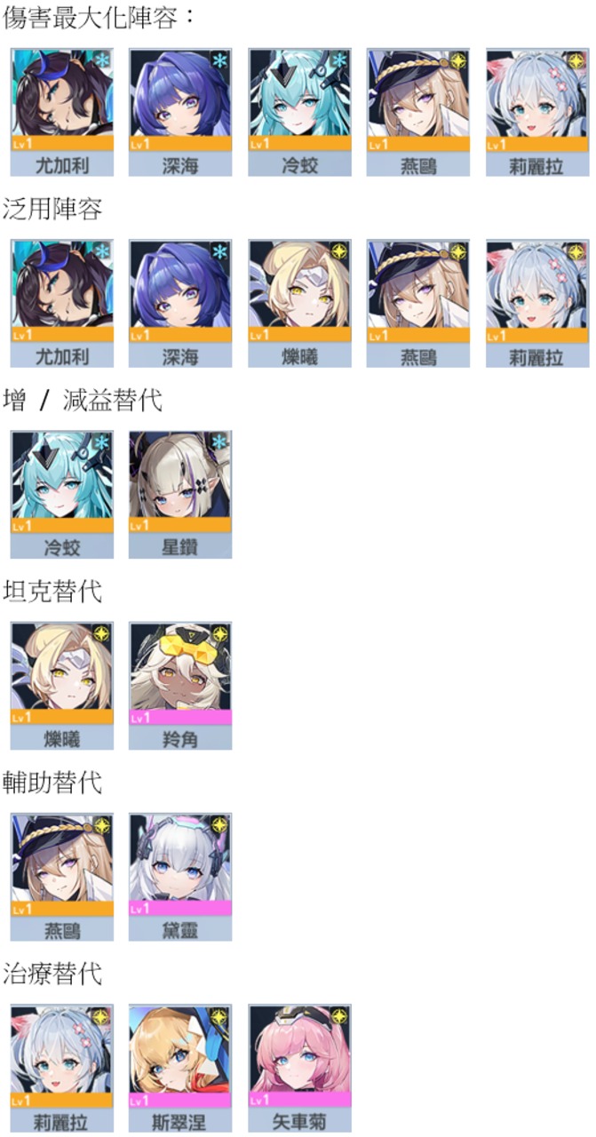 強烈建議優先於「情報」關卡中刷取角色升格碎片,尤加利升格到星階 3 會迎來質變,單體目標轉變為全體,相當強力。