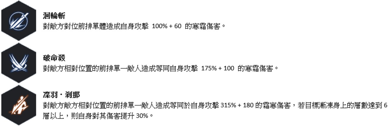 寒霜同調的特性是可以對敵人施加「漸凍」效果,降低敵人的移動速度,讓隊伍可以優先施放增益、減益效果來佔據優勢。