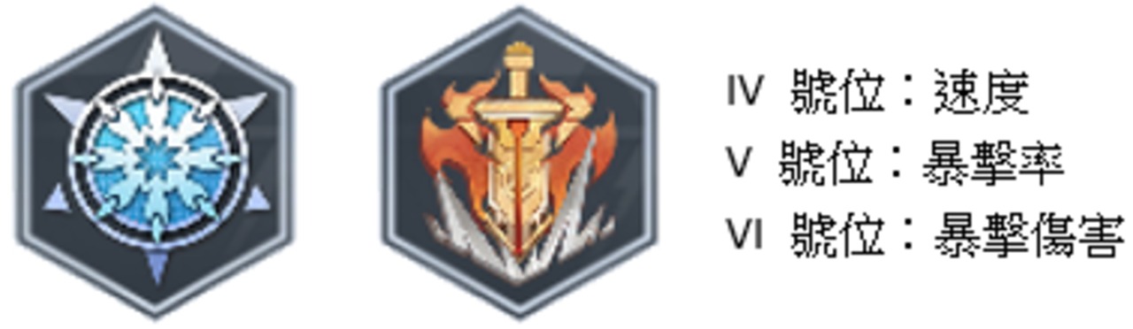 五、六號位則唯一推薦暴擊率以及暴擊傷害。