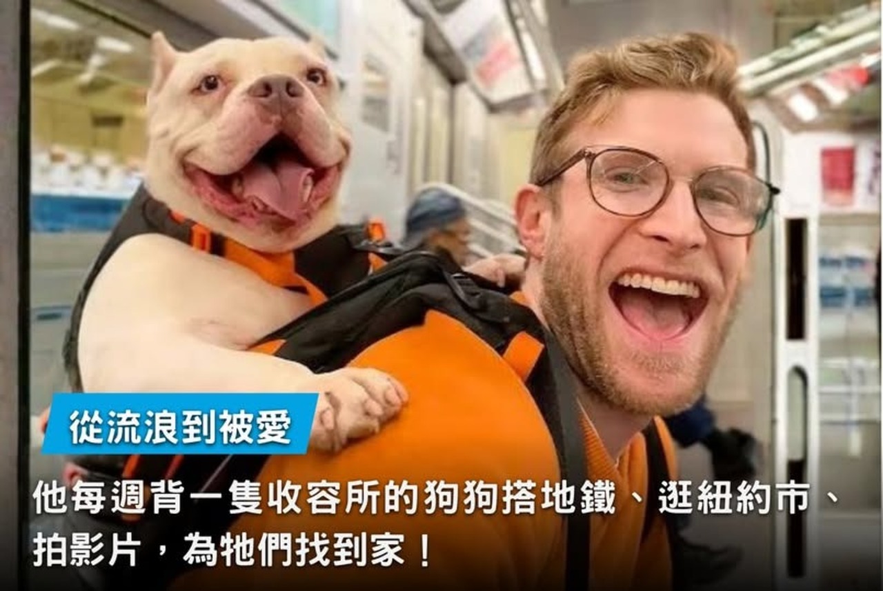 美國紐約午後,地鐵上,一名男子背後的背包掀起不少乘客好奇的目光——一隻白底棕斑的小狗從背包裡探出頭,不時往男人的臉頰送上溼答答的親吻。她叫伯莎(Bertha),去年10月被發現流浪街頭並被送入紐約市動物關懷中心(ACC)。