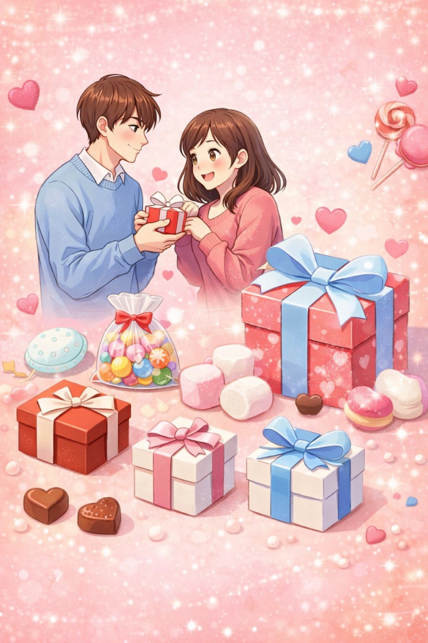 在情人節當天,通常是女生送巧克力或禮物給心儀的對象;而到了白色情人節,則變成男生回送禮物表達心意。常見的回禮包括 巧克力、糖果、棉花糖、餅乾或其他小禮物,象徵對這份感情的回應與感謝。