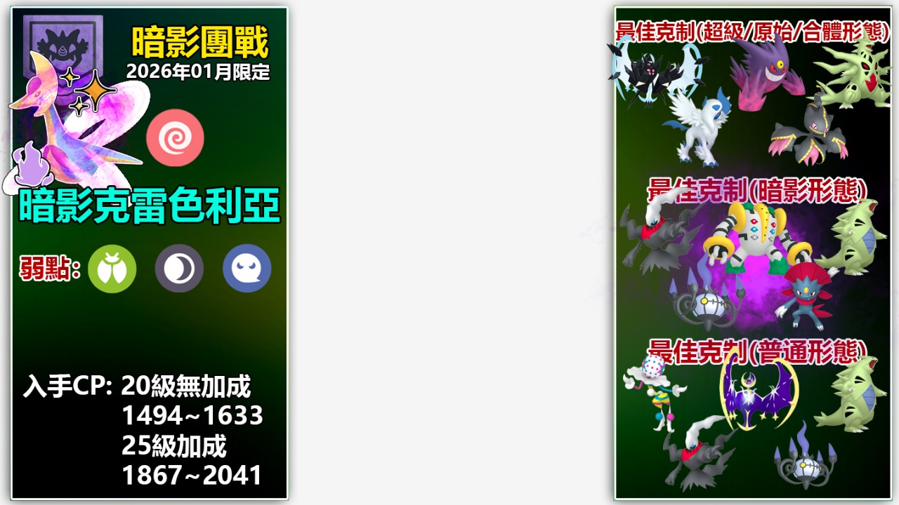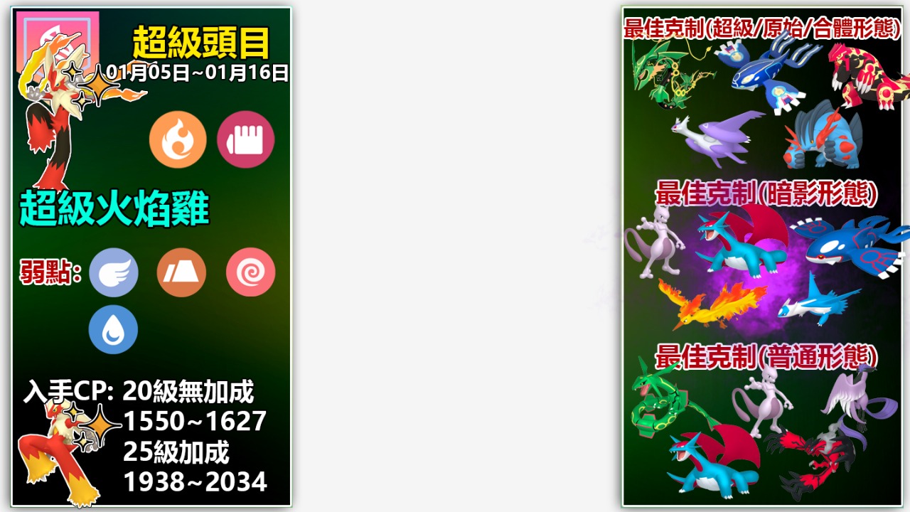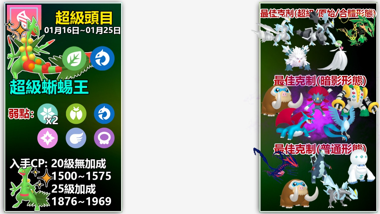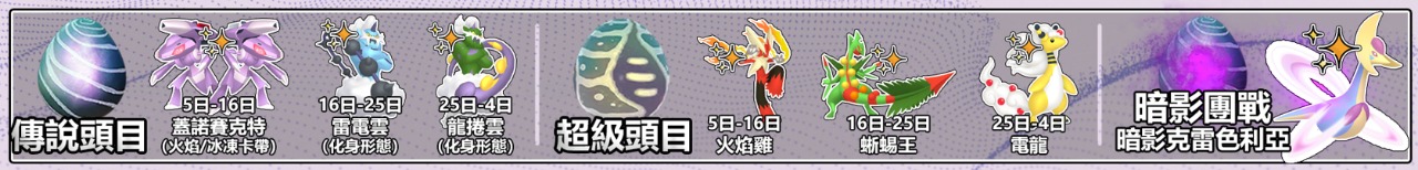 1月的傳說、暗影和超級團戰頭目更替情況一目了然!