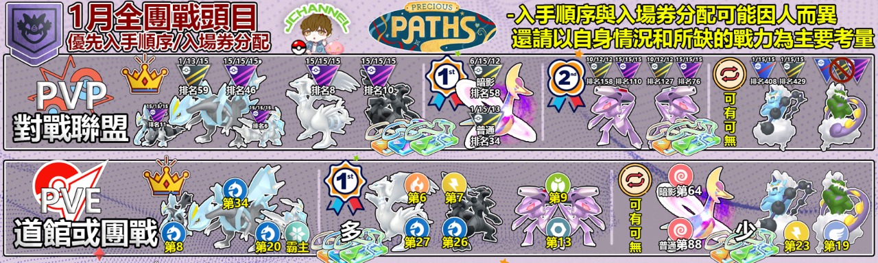 若想更全面去了解所有傳說和超級團戰頭目的優先入手順序,甚至是團戰入場券分配詳情等,