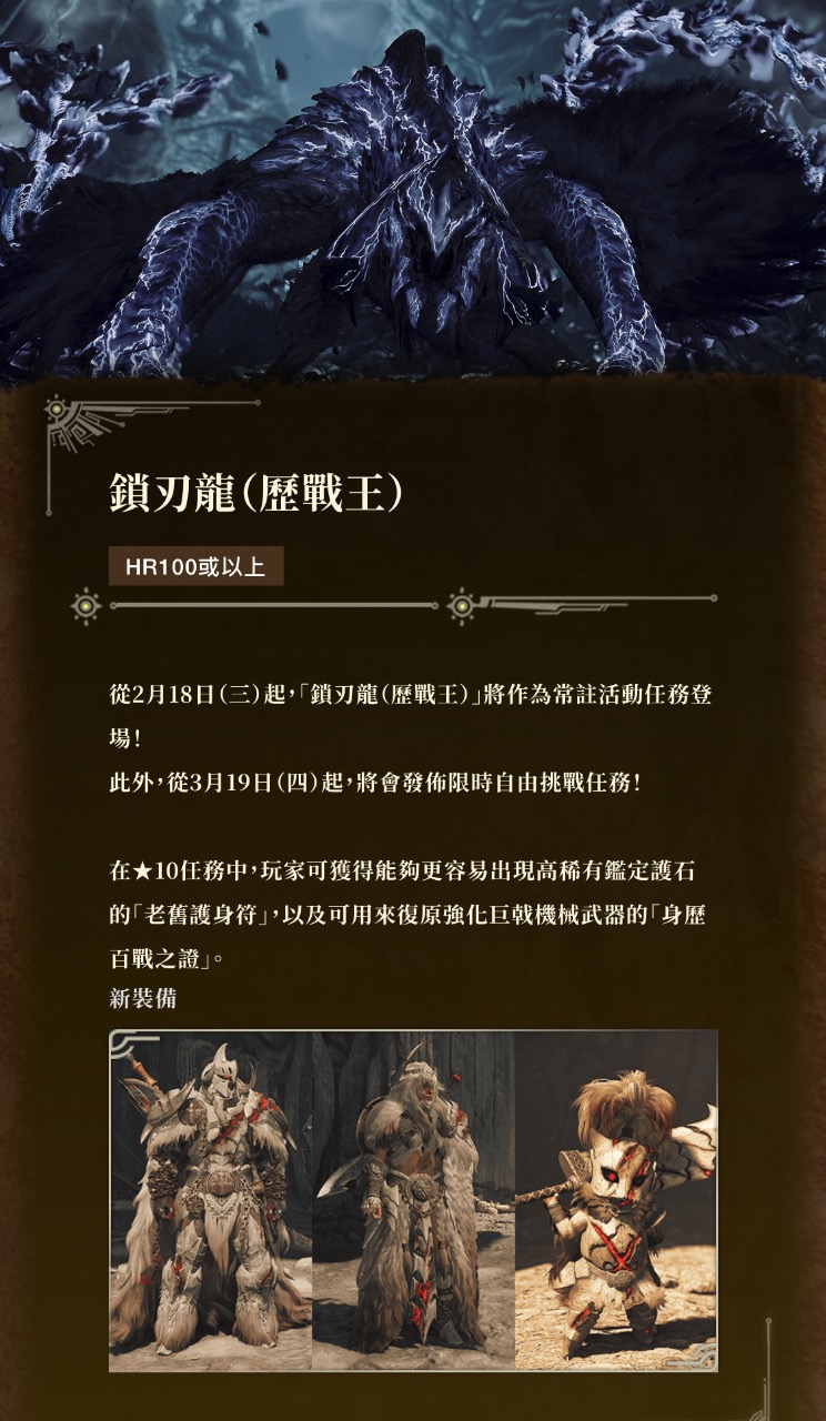 」為首的多隻 ★10 歷戰王魔物,另有特殊裝備,詳情請見