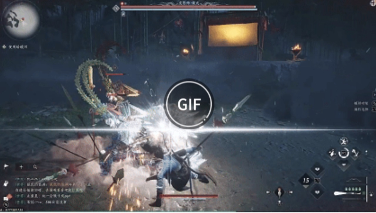 第二個技能,皮影師會高高跳起,這時候他手裡的長槍會發光,這個技能是沒有辦法彈反的,在boss跳起來的時候注意觀察長槍,在閃光的一瞬間使用閃避就能避免吃到傷害。