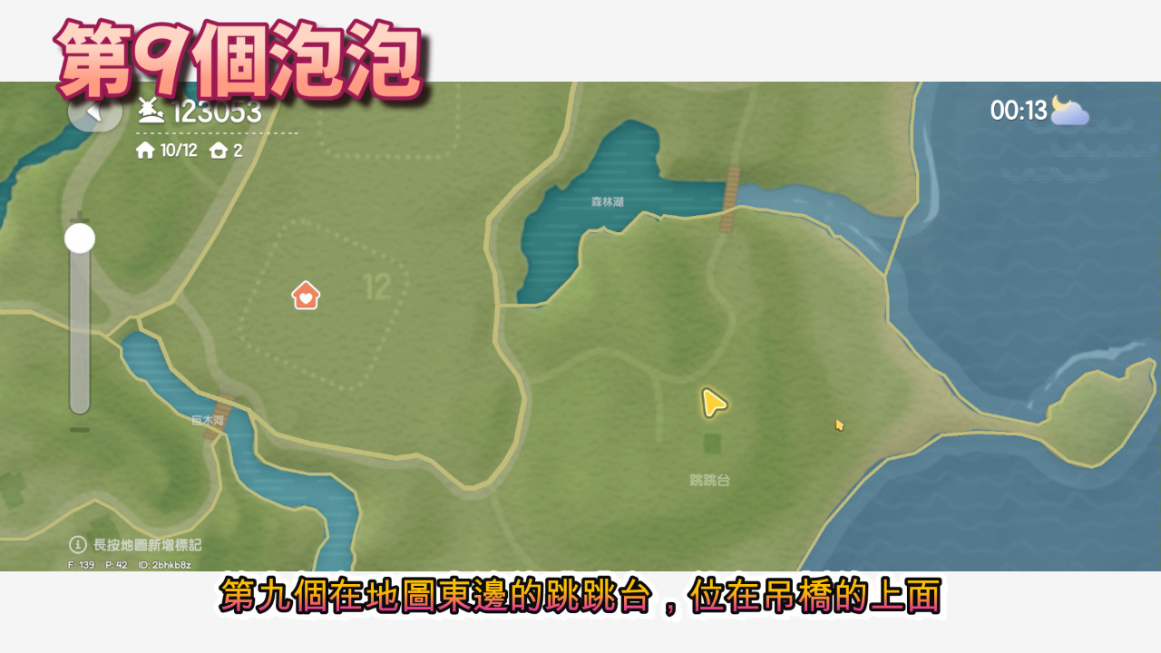 第九個在地圖東邊的跳跳台,位在吊橋的上面,旁邊有樓梯可以上來