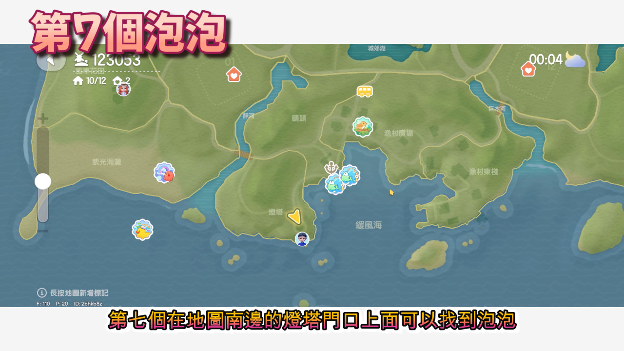 第七個在地圖南邊的燈塔門口上面可以找到泡泡