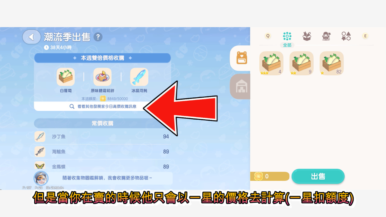 然後看你的號當週皚皚兩倍收購的標的是什麼,每個人都不一樣,我們就盡量把糖霜都做成兩倍收購的料理去賣給皚皚獲取潮流幣。