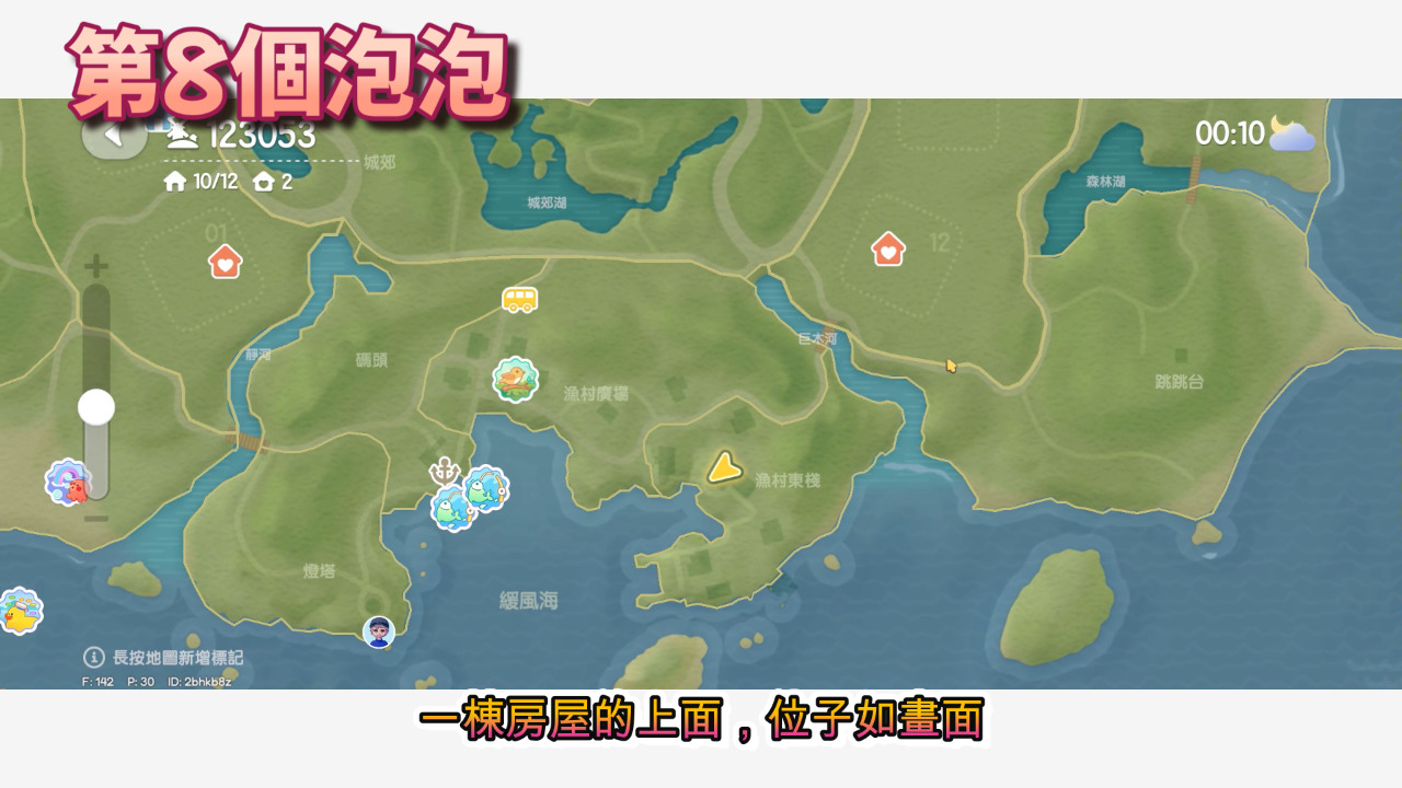 第八個也在地圖南邊,位在漁村東棧,一棟房屋的上面,位子如畫面