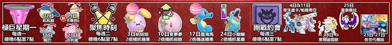 世界各地的訓練師們在整個月份內都可期待哪些好康內容?