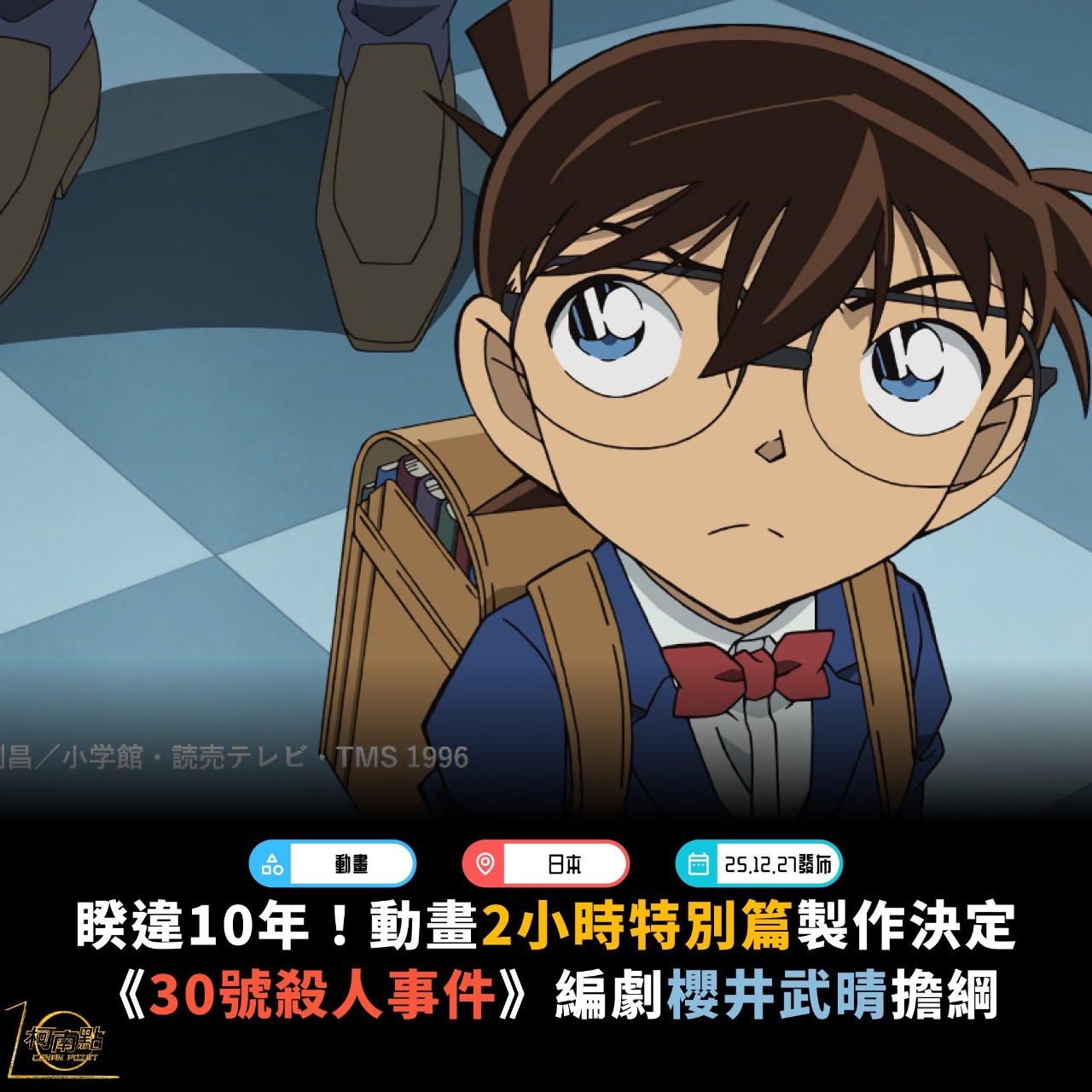 睽違多年,《名偵探柯南》電視動畫再度帶來重量級新作。官方於稍早直播節目中正式宣布,將推出 電視動畫 2 小時特別篇《30號殺人事件》,並確定進入動畫製作階段,消息一出立刻引發粉絲熱烈關注。