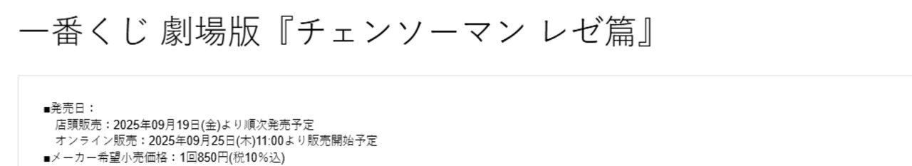 鏈鋸人蕾潔篇當然也有推出一番賞,不過有網友發現原本一抽只要335元左右,結果現在有店家漲到一抽800元...日本一抽850円,真的是把日幣當台幣在賣... 而且大獎都被抽走了,誰會花800元拿一個小獎... 圖片來源