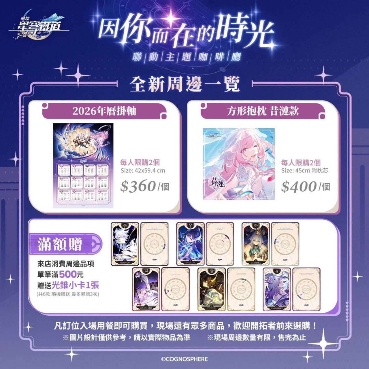 - 任一餐點皆贈「光錐小卡」1張(共6款,隨機,可累贈)