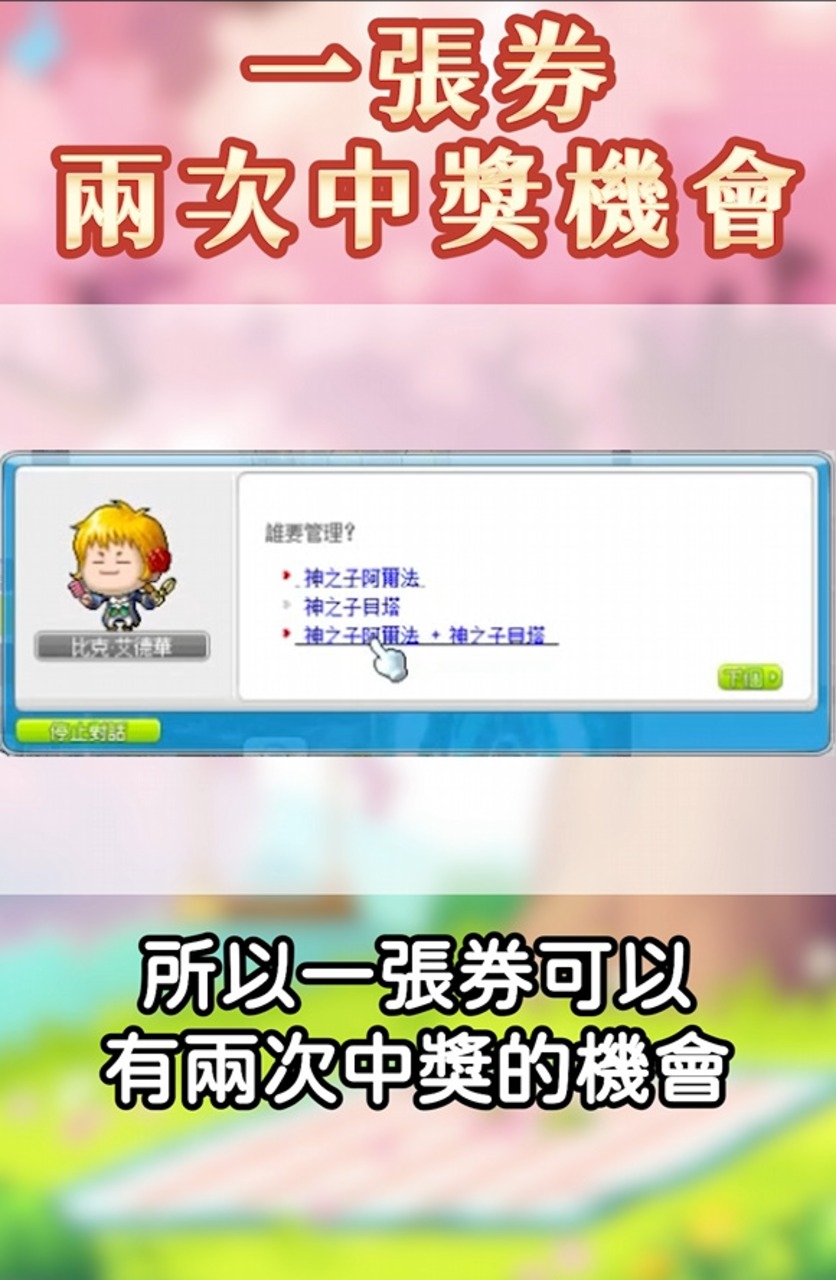這部是分享神之子特性在馬戲團拔頭拔臉的應用 神之子職業在抽頭抽臉的時候 可以選擇單抽男/女或是一起抽 所以一張券可以有兩次中獎的機會 因此當自己的主力角色有男有女的時候 可以給神之子抽 不管是先出男生主打還是女生主打 都可以等到馬戲團第二、三週的髮型移動、臉型移動 再轉到自己想要的角色身上 不過如果有自己想要拔的 其他職業的初始髮型、臉型的話就不適用了 順帶一提 皮膚券也可以一張兩人用