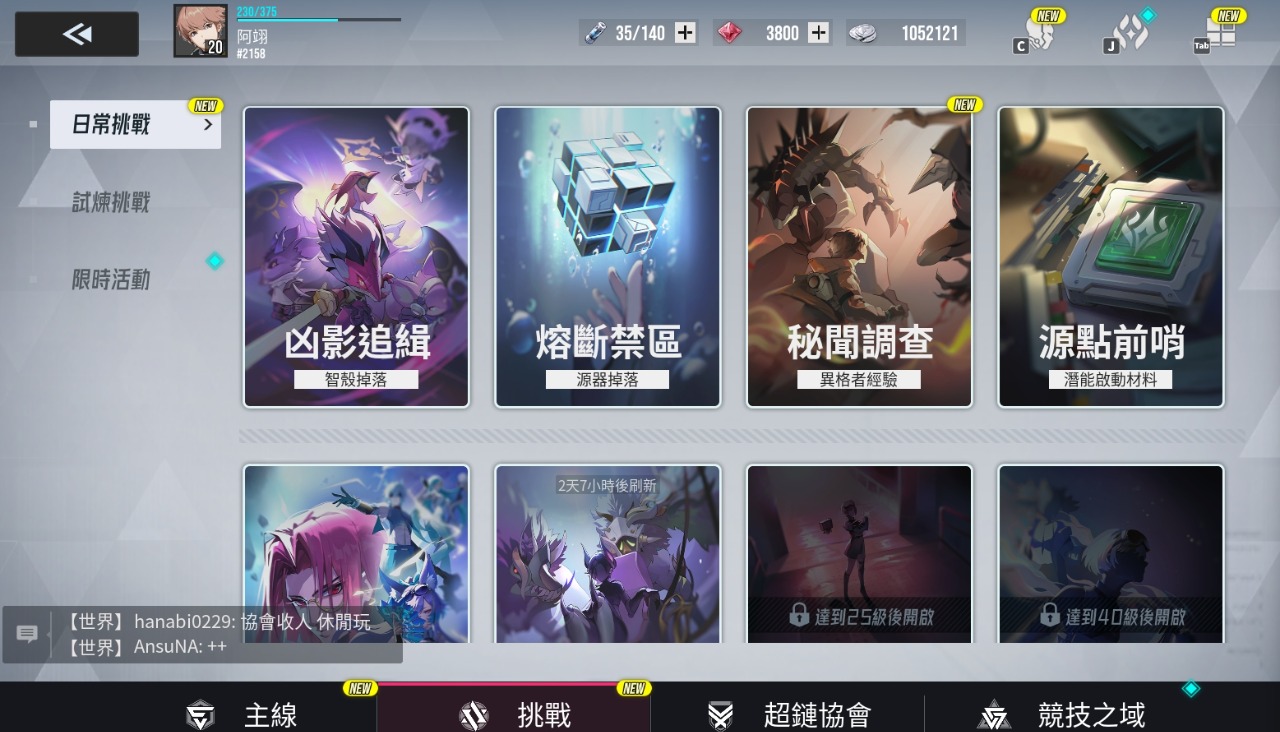 - 異格回響(試煉挑戰):不限時間,獎勵豐厚。