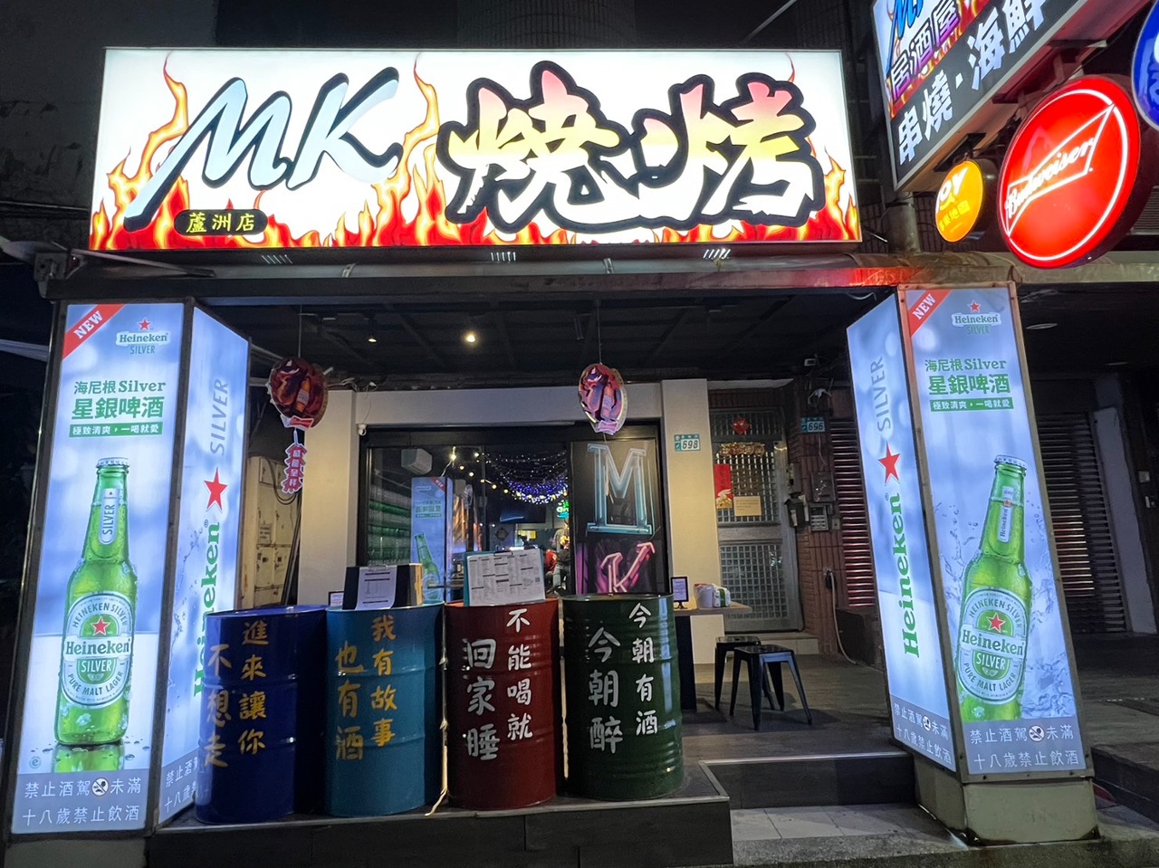 《MK 串燒海鮮居酒屋》位在蘆洲長榮路上,離鷺江國中不遠,也離蘆洲捷運站算近,步行約8分鐘。