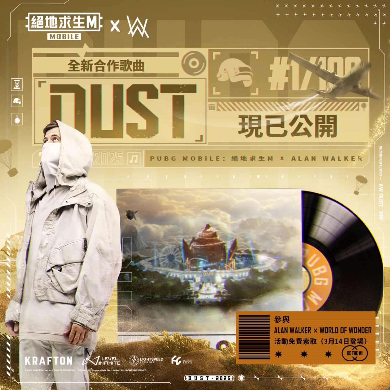 Alan Walker再次和PUBG MOBILE合作,完成活動就可以拿到 On My Way, Faded,和新單曲 Dust