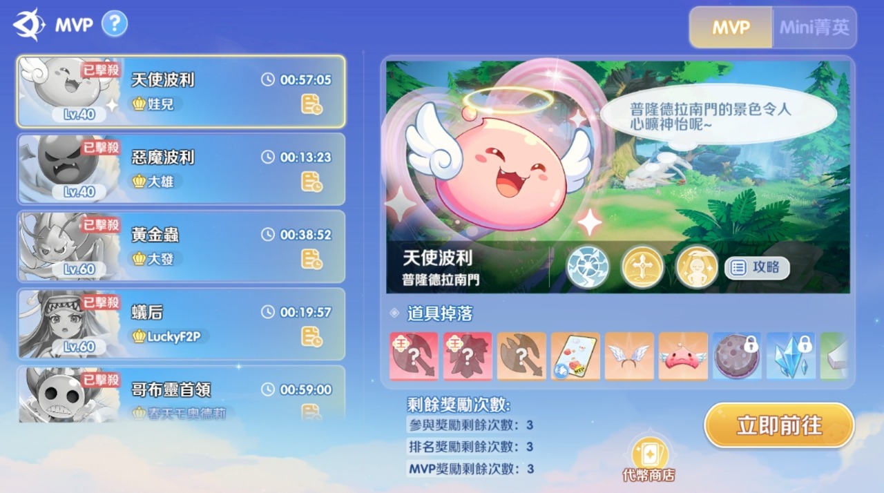 能獲得經驗值與冒險幣。