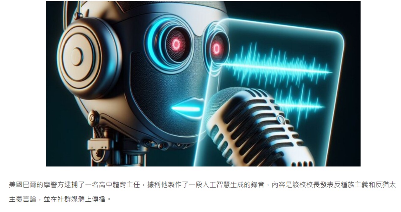 美國高中校長因多段種族歧視的錄音被炎上還遭學校停職,結果警方發現是體育主任用AI偽造的