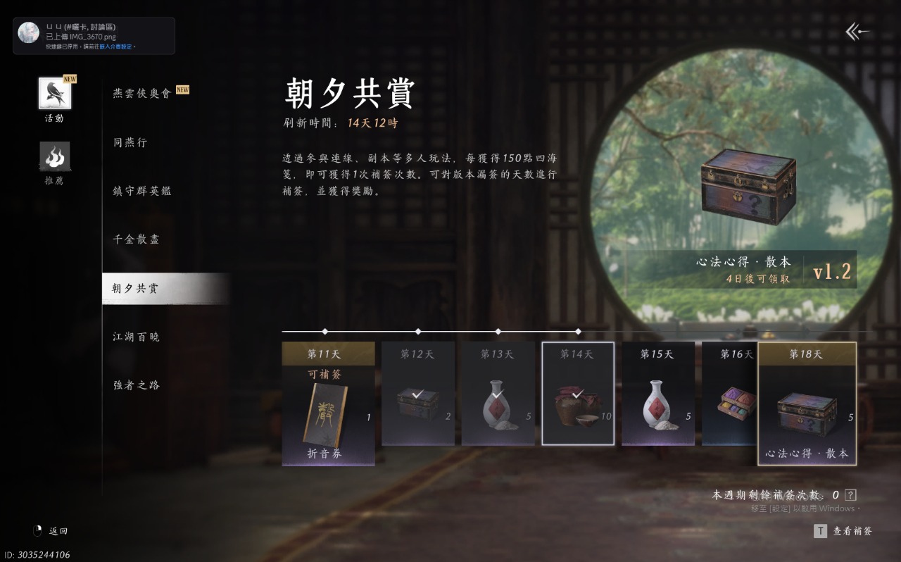 4. 朝夕共賞簽到每月可獲得20本以上心法散本,平均每週約5本