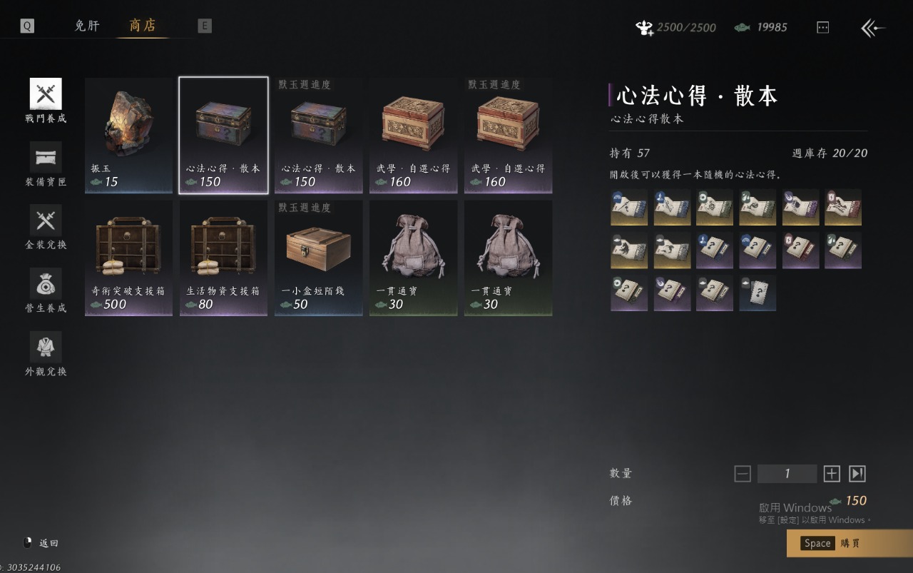 2. 太平武墓傳承商店每週還可以兌換5本心法散本