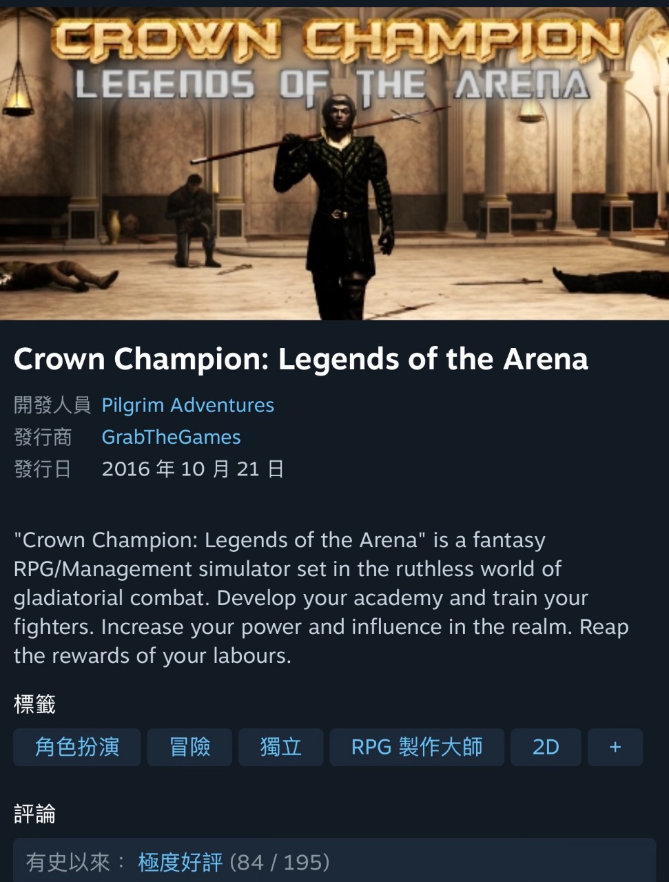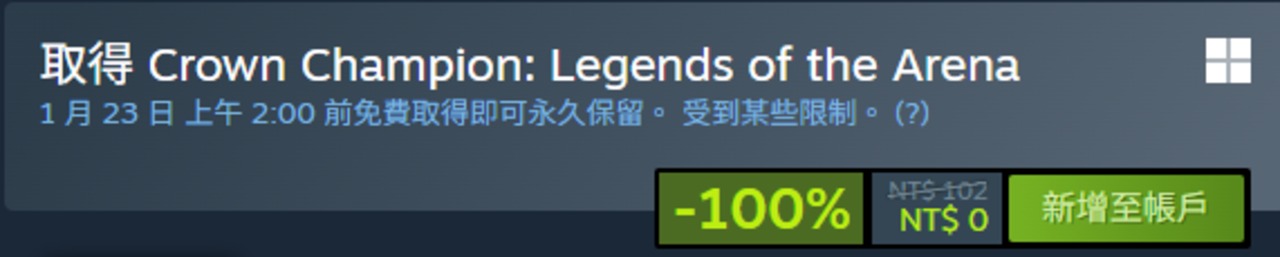 【Steam限時免費遊戲】1 月 23 日 上午 2:00 前都能領Crown Champion: Legends of the Arena