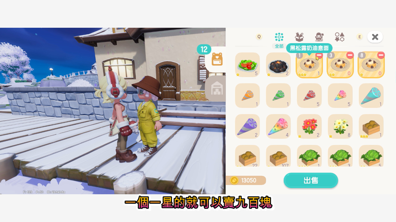 菇類也是有它的採集區域的,平菇在北邊的溫泉山,香菇在南邊的漁村,牛肝菌在右邊的森林區域,洋菇在左邊的鯨魚山跟花田區域,然後比較特別的松露在東北邊的森林島,目前我都拿來做黑松露奶油意麵,一個一星的就可以賣九百塊,當然因為我烹飪已經在等級五了,所以才在嘗試量產不一樣的料理。