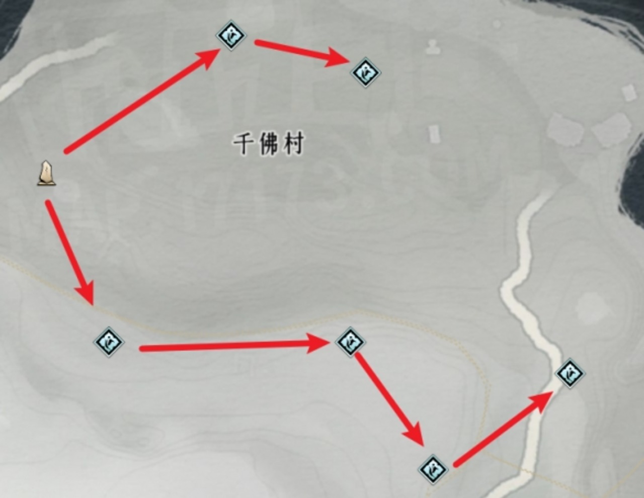 千佛村附近有6個蹊蹺可收集,位置與路線圖如下。