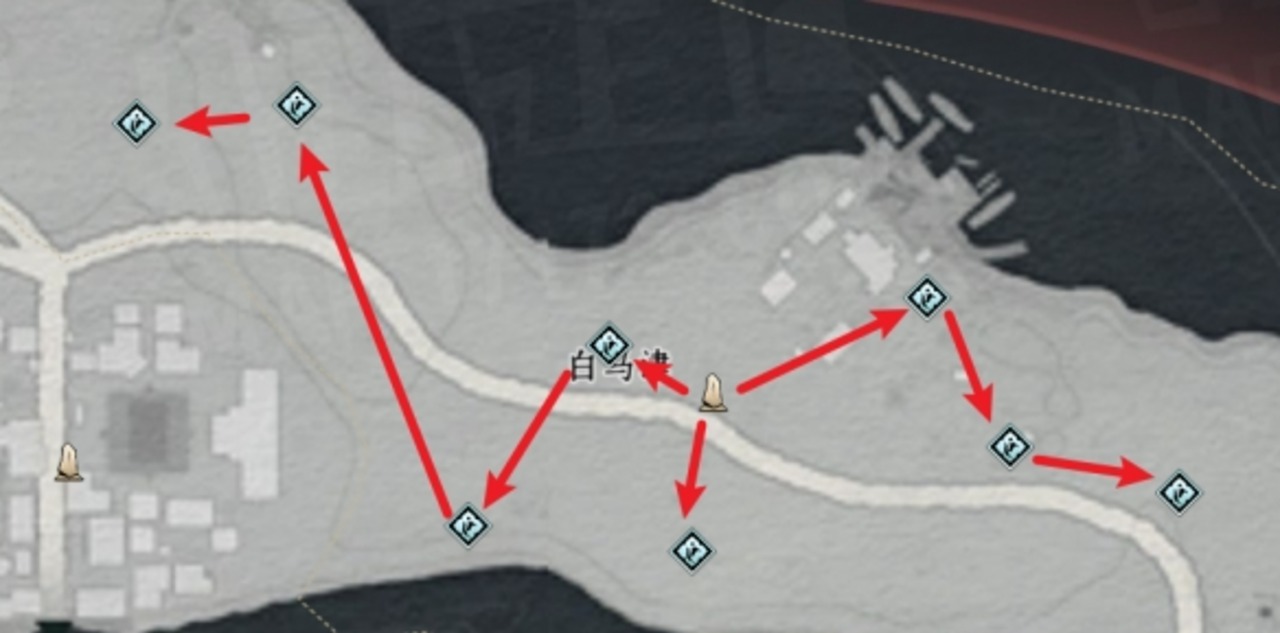 白馬津附近有8個蹊蹺可收集,位置與路線圖如下。