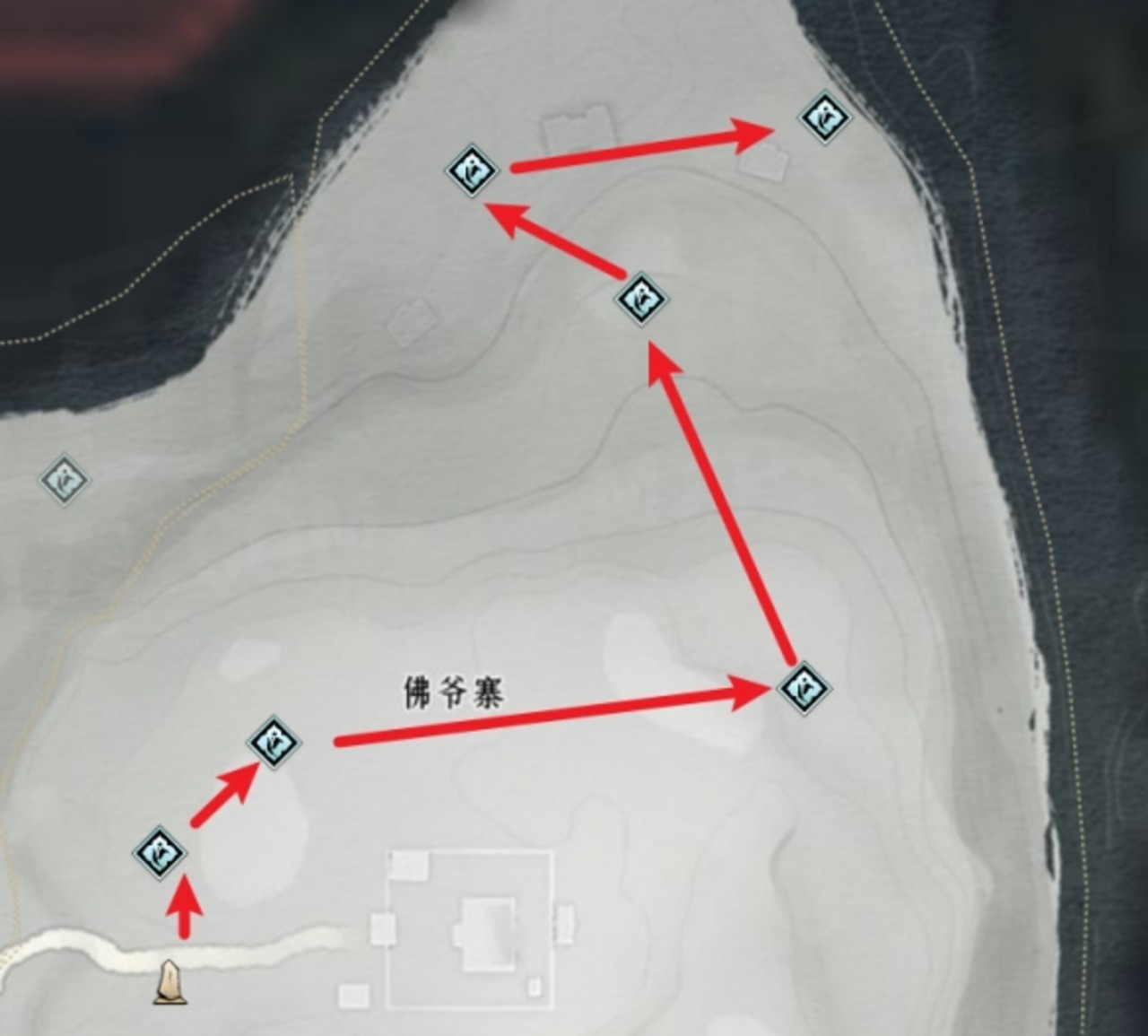 佛爺寨附近有6個蹊蹺可收集,位置與路線圖如下。