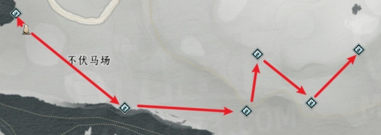 不伏馬場附近有6個蹊蹺可收集,位置與路線圖如下。