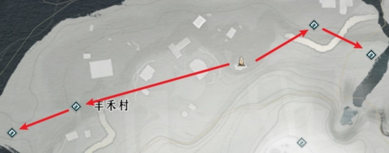豐禾村附近有4個蹊蹺可收集,位置與路線圖如下。
