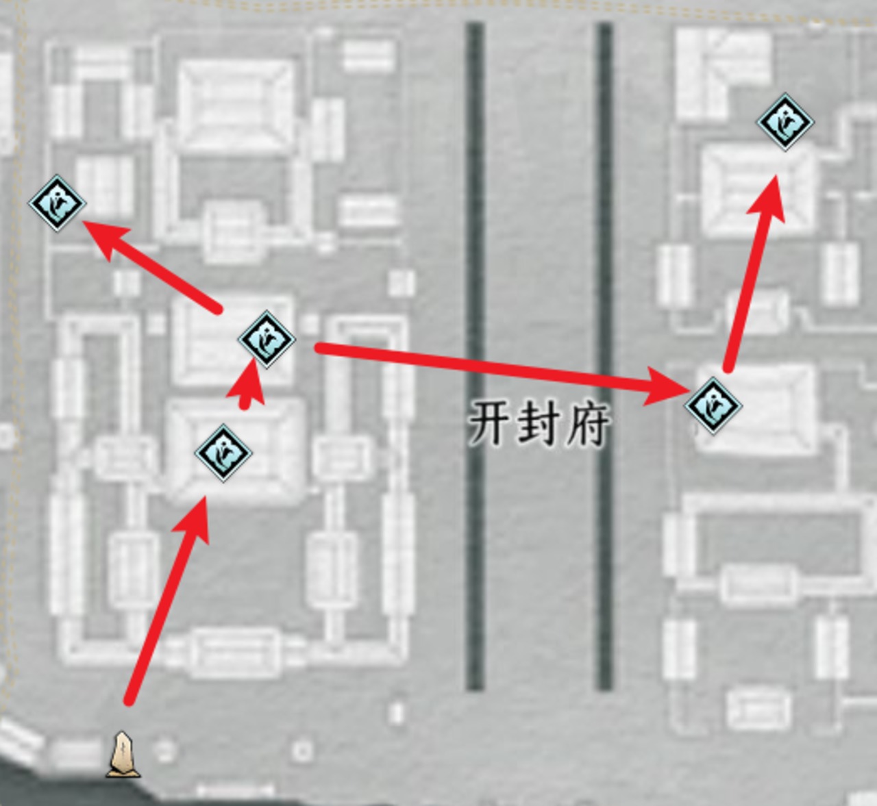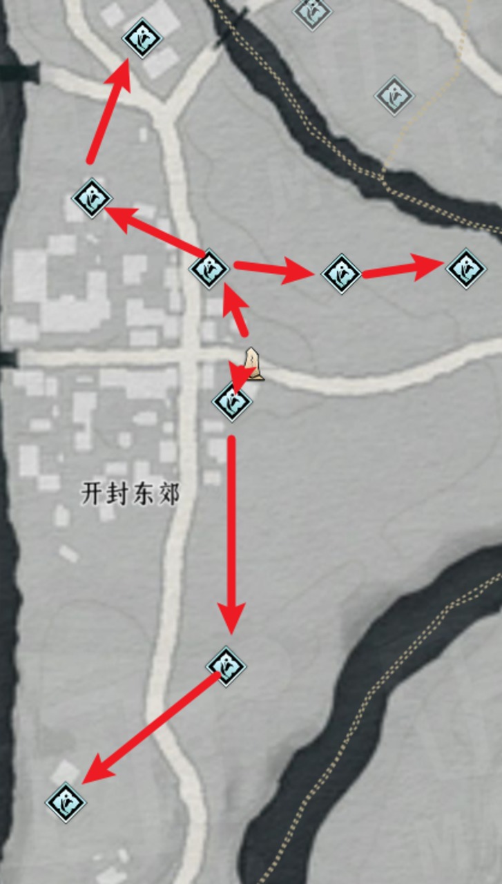 開封府附近有5個蹊蹺可收集,位置與路線圖如下。