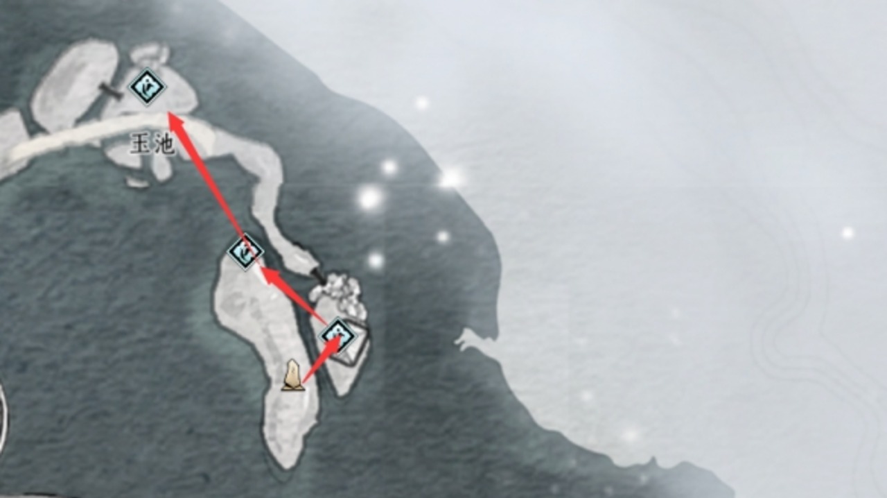 浣石浦附近有4個蹊蹺可收集,位置與路線圖如下。