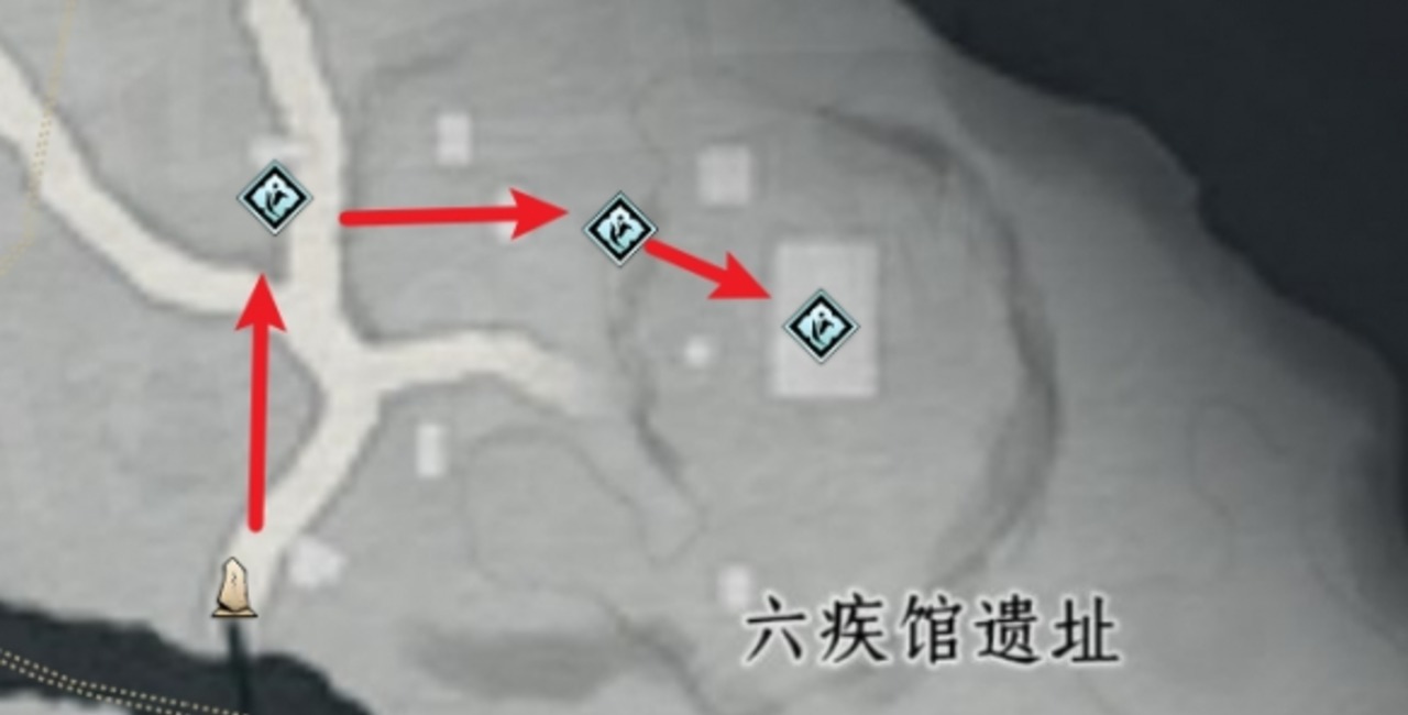 六疾館遺址附近有3個蹊蹺可收集,位置與路線圖如下。
