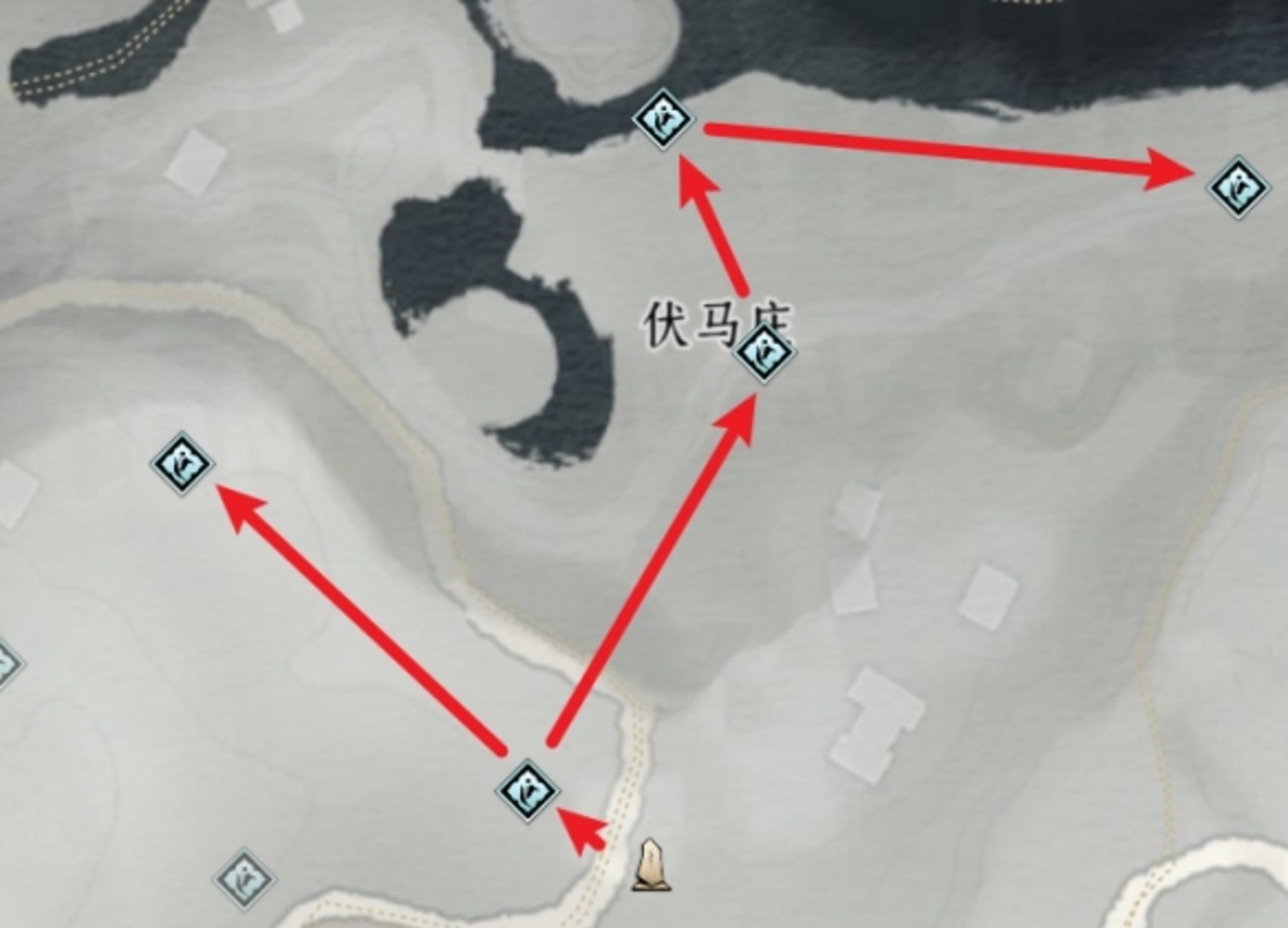 伏馬莊附近有5個蹊蹺可收集,位置與路線圖如下。