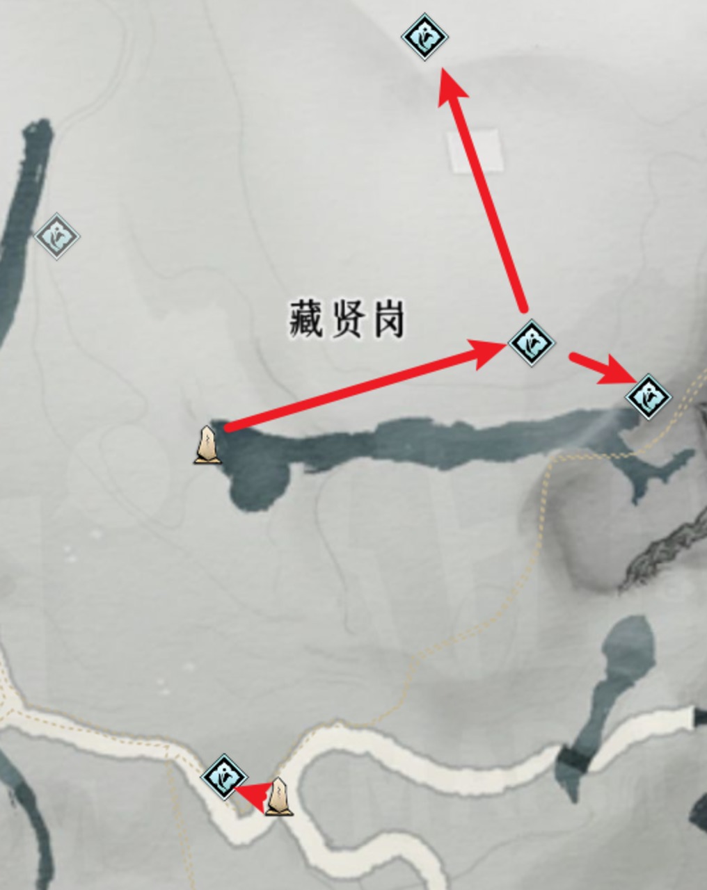 藏賢崗附近有4個蹊蹺可收集,位置與路線圖如下。