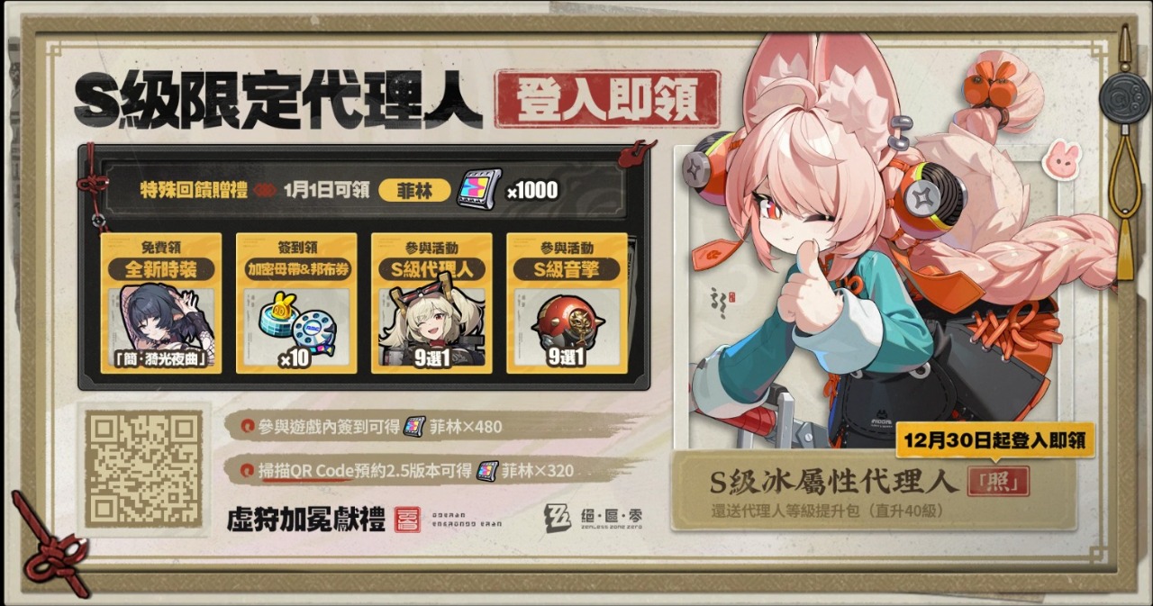 參與《絕區零》2.5版本「虛狩加冕之時」預約活動,領320菲林、遊戲內紀念道具及限定稱號! 更有遊戲機、模型、800菲林等抽獎獎勵!https://hoyo.link/jtFJX60gz?u_code=CAGJGALYDG2K 即將改版啦! 還不抽爆小光~