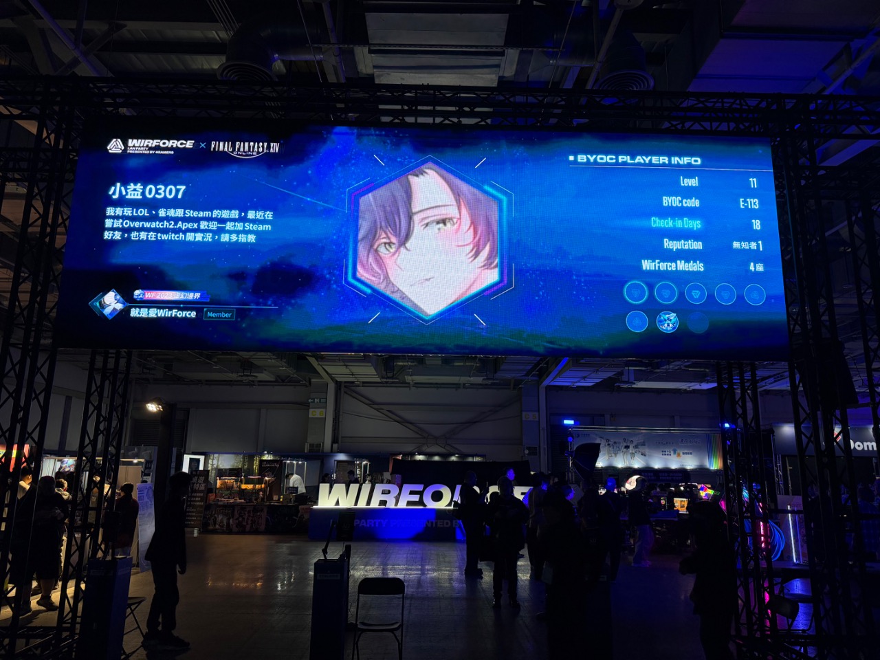 WirForce在五股工商展覽館舉辦時,我在好多實況主的圖奇台看到覺得很酷欸,2016搬到花博之後,我都很期望有一天我也能在裡面玩電腦跟朋友玩在一起,感謝從2019年一位叫小星的女生唱歌實況主開了團,讓我們這些觀眾或小小實況主,能一起進來到BYOC區,而當時犬態也有為了我們做了一個辨識團員的狗牌,很開心今年我也還有找他合照,他也還記得我。