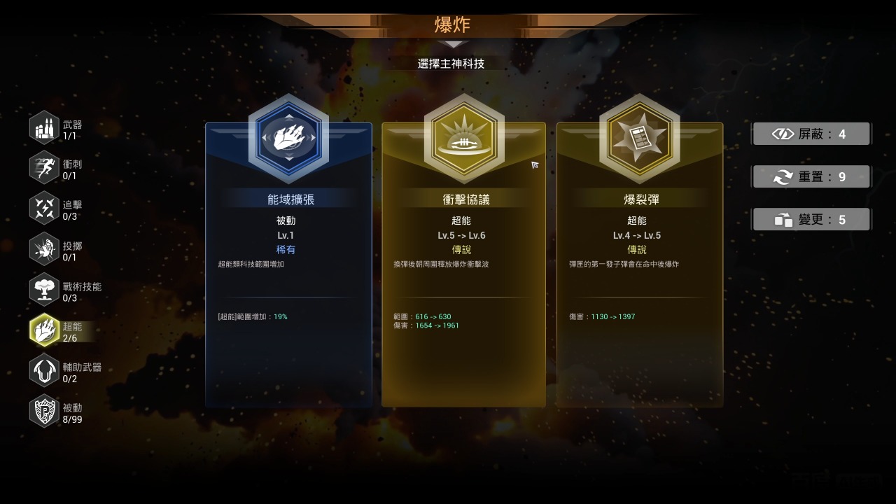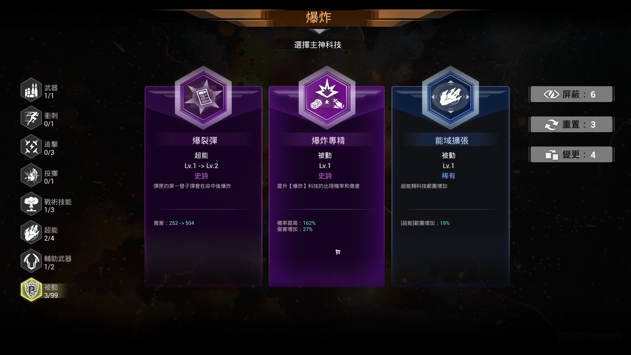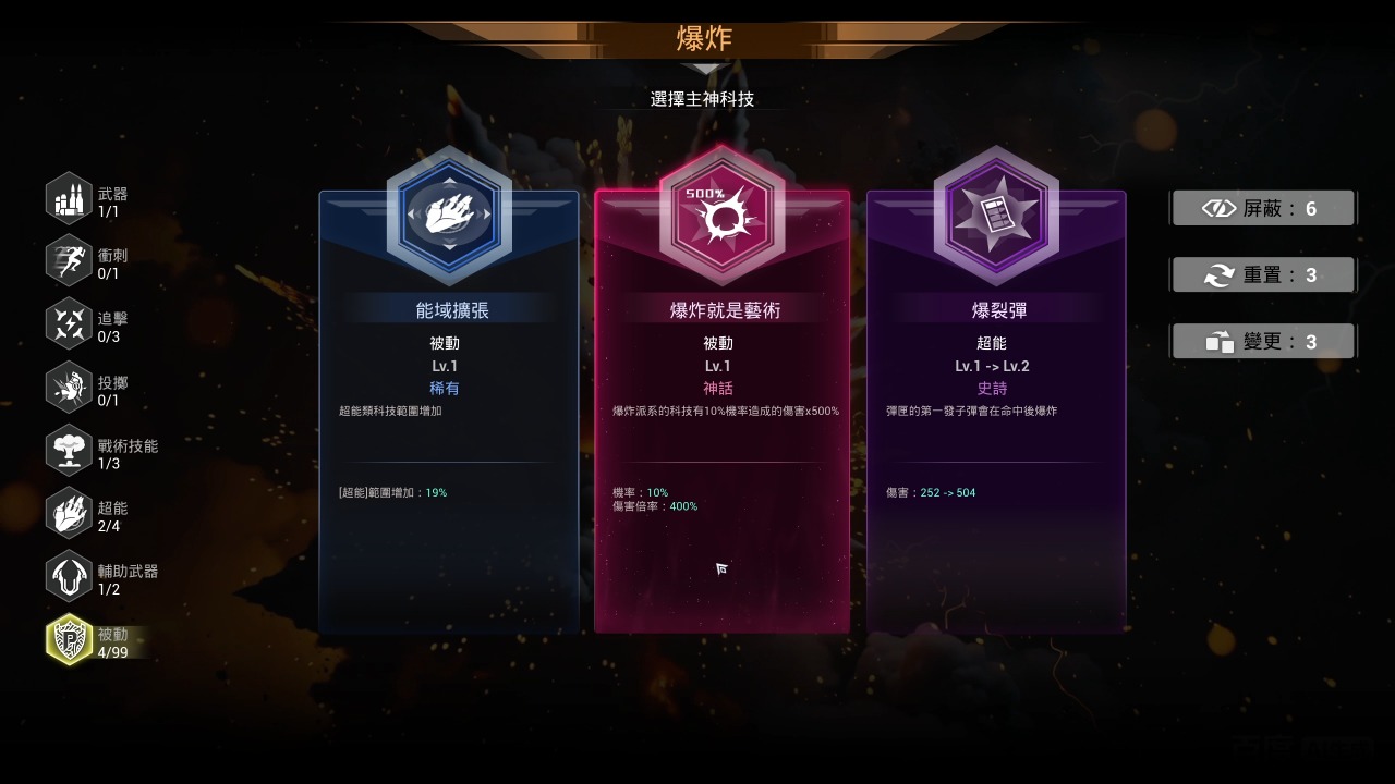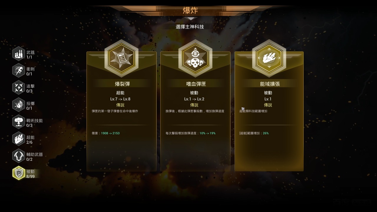 必須點出同屬爆炸類的被動技能**「能域擴張」**
