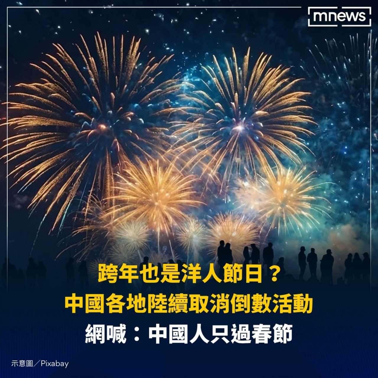 2026年即將到來,跨年倒數活動是許多民眾迎接新年的方式之一。不過最近中國許多地方的跨年晚會卻突然傳出取消的消息。在中國社群「微博」就有人發文整理提到:「多發文提醒,沒有跨年活動,取消相關活動,勿聚集,莫跑空。」並附上其中幾個取消的跨年晚會資訊。