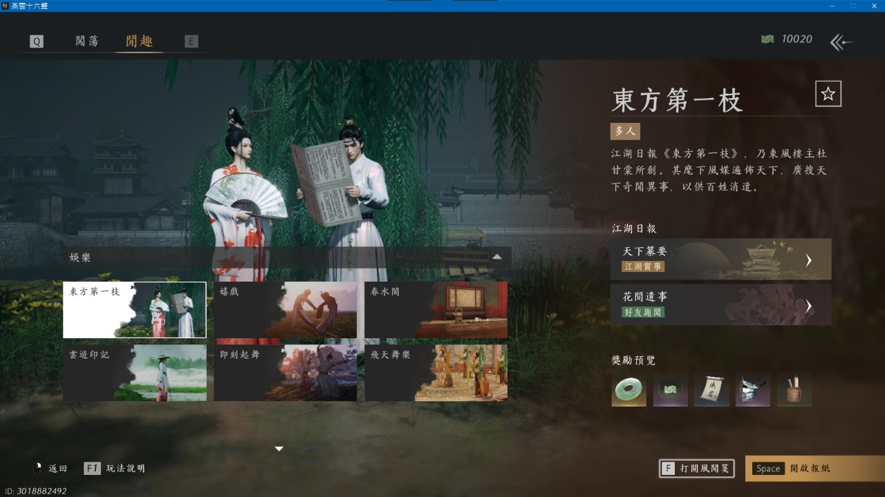 江湖行>休閒合作>東方第一枝>按右下角打開風聞箋