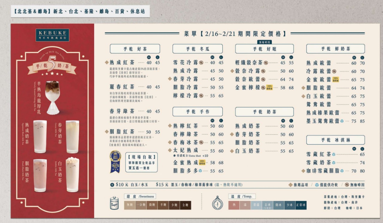 沒想到這波年節漲價潮,連手搖飲也加入行列。可不可熟成紅茶於今(12)日在官方Facebook粉絲團公告指出,因應春節期間人力調度與備料成本提高,將於2月16日至2月21日進行價格調整,常態飲品每杯調漲5元。2月22日起則恢復原本售價。 品牌也強調,此次僅為春節期間的短期調整,希望在成本增加的情況下,依然維持一貫的茶韻與品質,陪伴消費者度過新年假期。 過年期間,你會因為漲5元而少喝一杯,還是照樣天天來一杯熟成紅茶呢? 年節價格單 可不可熟成紅茶 FB