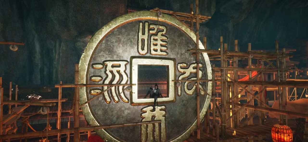「恩義相傳」: 進到九流門駐地後,對著道主跪拜即可拿到! 「鑽進錢眼」: 爬上超大的銅錢,在中間的洞裡坐下來就可以。