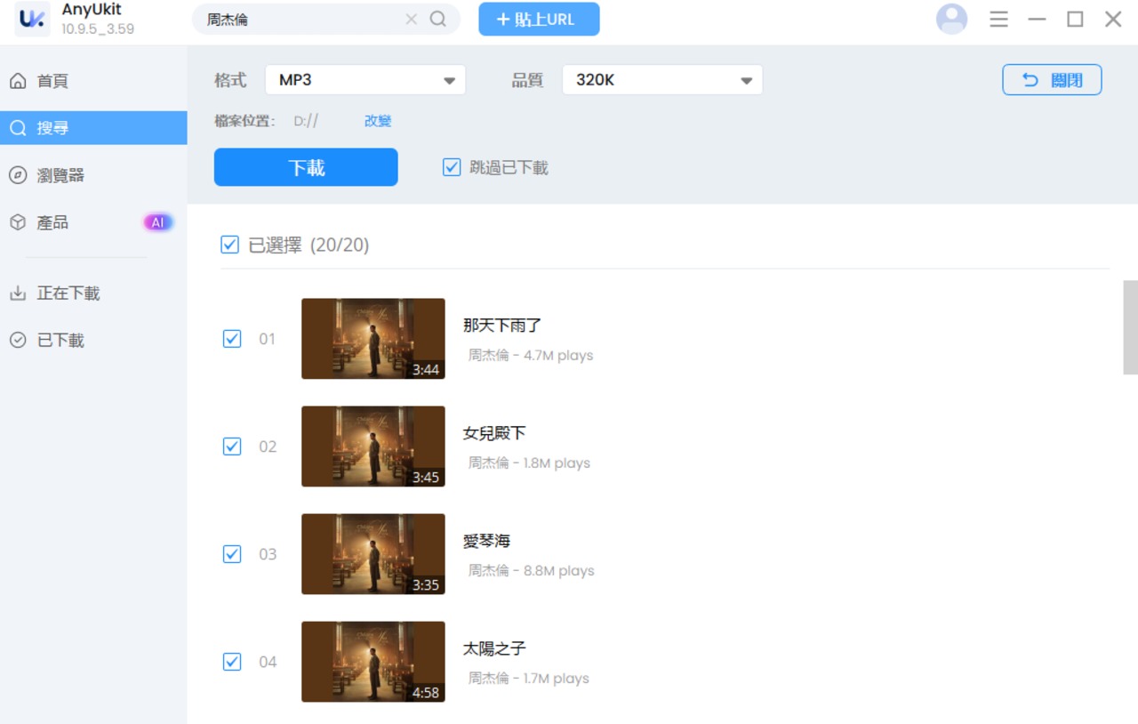 如果你想要一次下載整張專輯或上百首歌單,網頁版會讓你點到手軟。這時 AnyUkit 這種專業軟體就是你的救星。