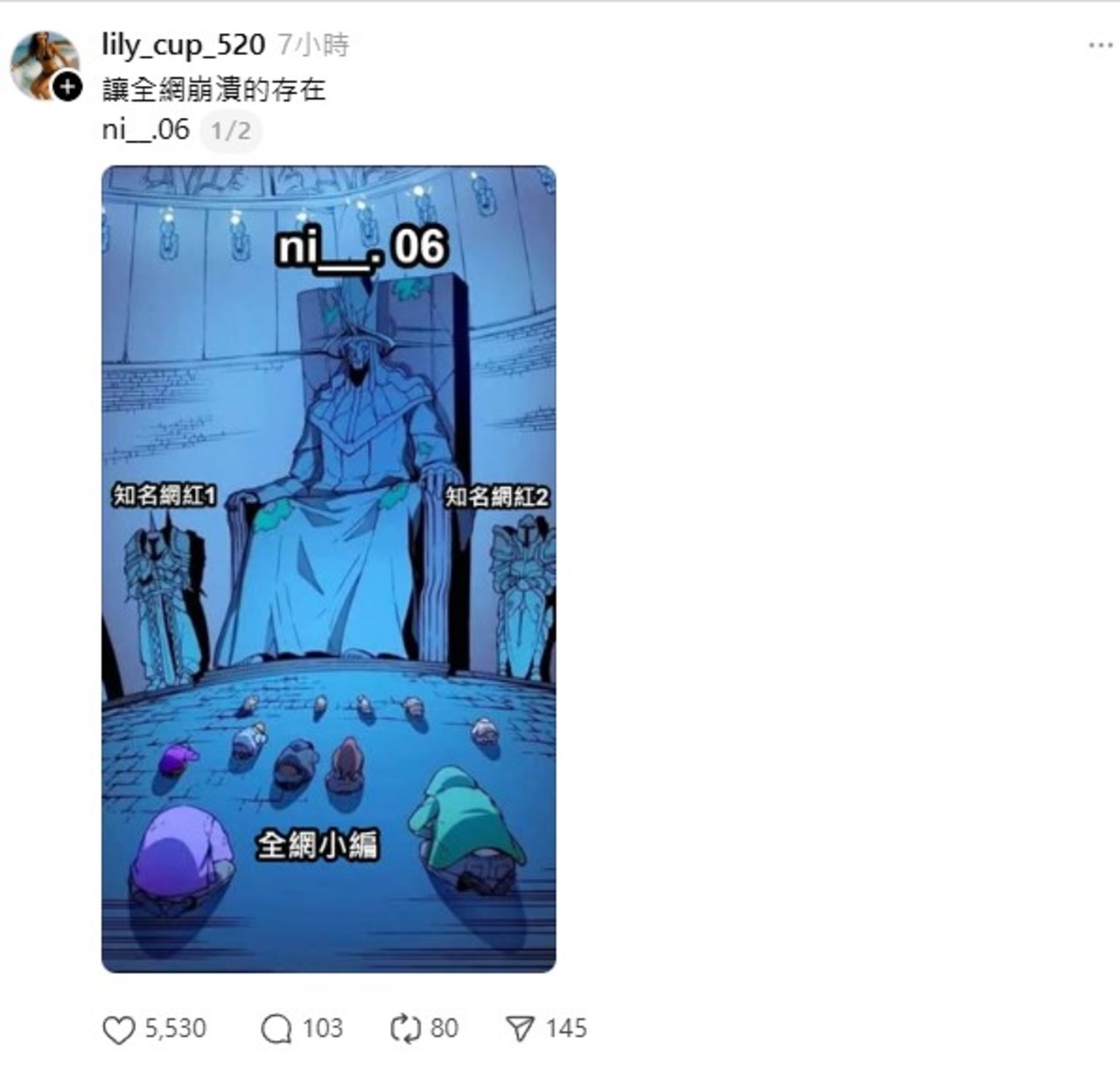 可能會看到某些貼文底下有人留言:「這根本 ni__.06 等級」、「又是 ni__.06 爆紅」──