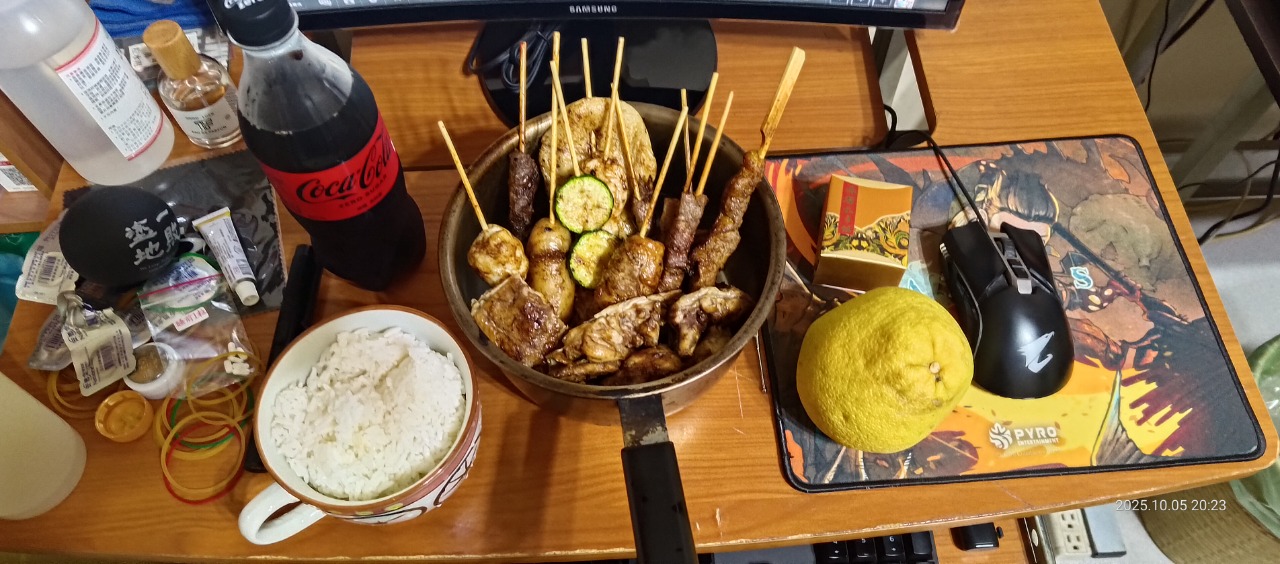 我家附近的烤肉餐廳都訂不了位子,不開放一人訂位QQ 只好去家裡附近路邊攤烤肉買回家過過癮~有烤肉有飯有快樂水跟柚子,邊吃邊看新番也是很享受! 大家一人烤肉都怎麼過呢?