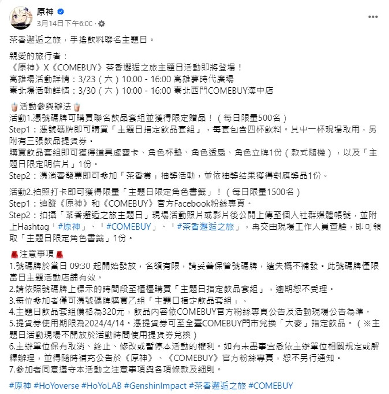 這週六就是原神跟COMEBUY北部線下主題日了,不知道大家準備好了嗎? 上週高雄主題日有人分享現場限定一番賞,不過依自己經驗我都是抽到D跟E那種人QQ 這次聯名活動目前收集到的週邊~希望現場一番賞能抽到C賞以上~坐等當天主題日大家一起分享~