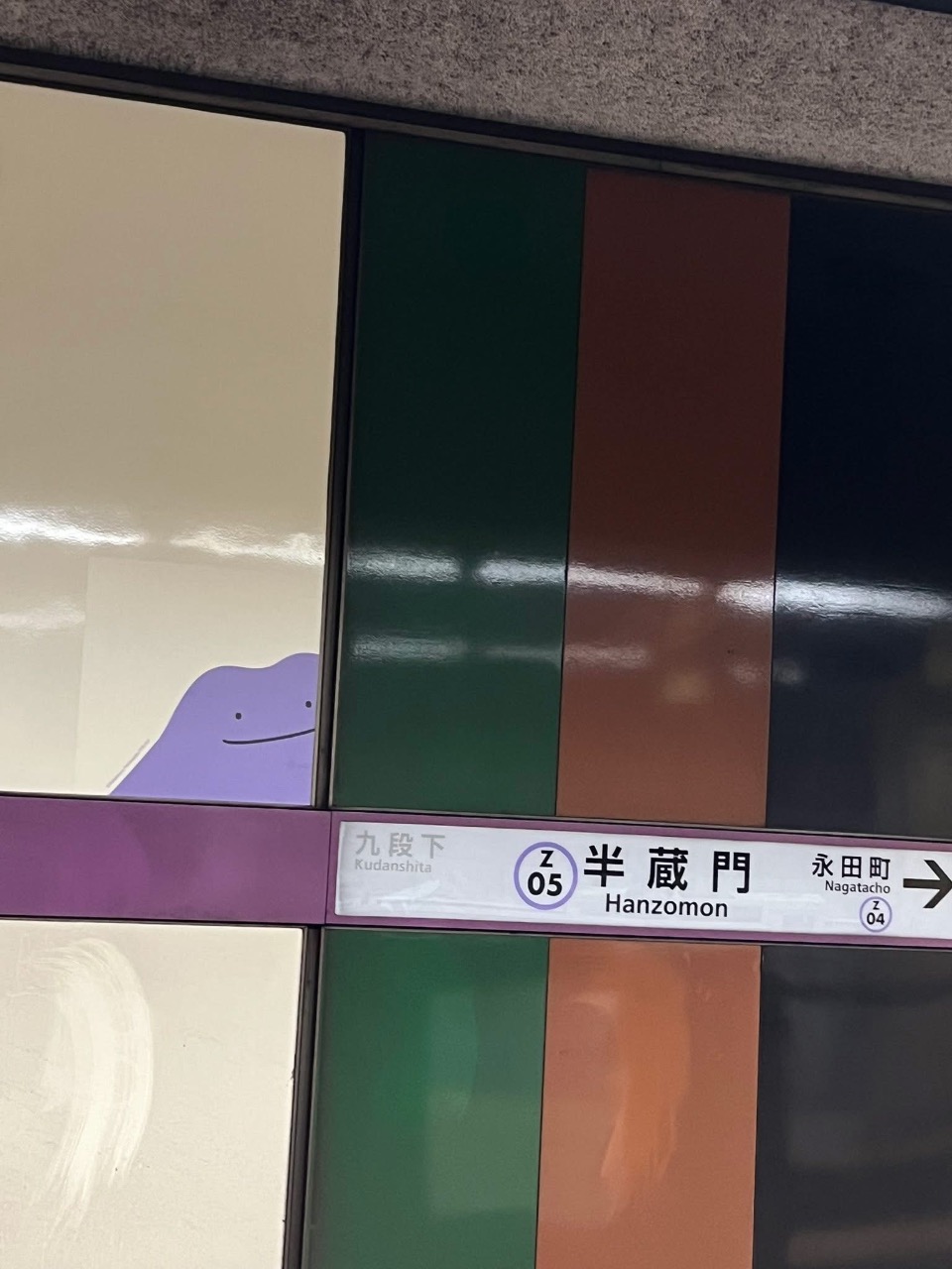 從 3 月 2 日起至 3 月 15 日,東京 Metro 半藏門線(Hanzomon Line) 搭上了百變怪熱潮,以百變怪為主題裝飾月台與列車,整條路線彷彿化身成「半藏怪線 / 半蔵モン線」,可愛程度爆表,吸引了大量玩家與通勤族拍照打卡。